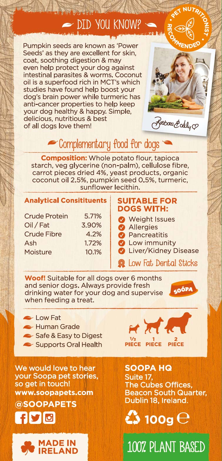 Soopa Carrot & Pumpkin Dental Sticks Dog Chew
