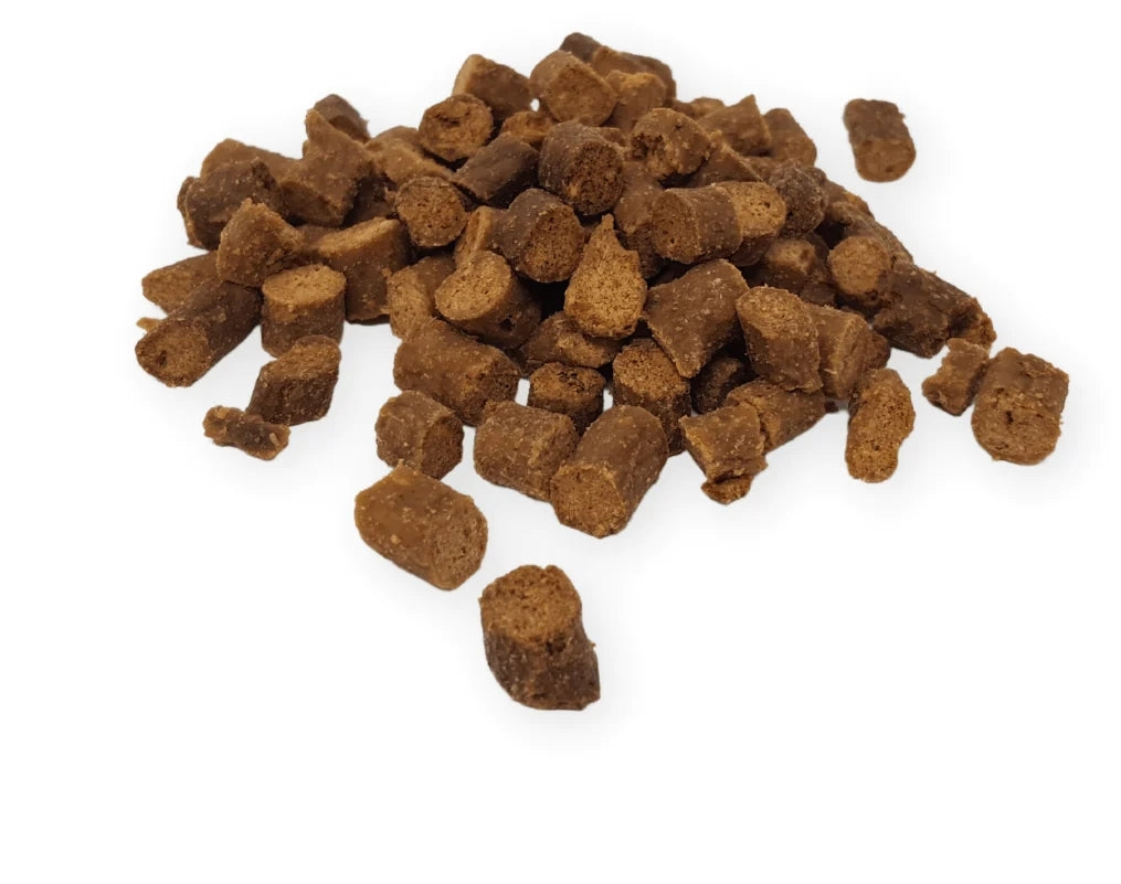Turkey, Salmon, Rabbit and Beef are very popular with training. If your dog has intolerances Goat, Rabbit and Ostrich are popular
