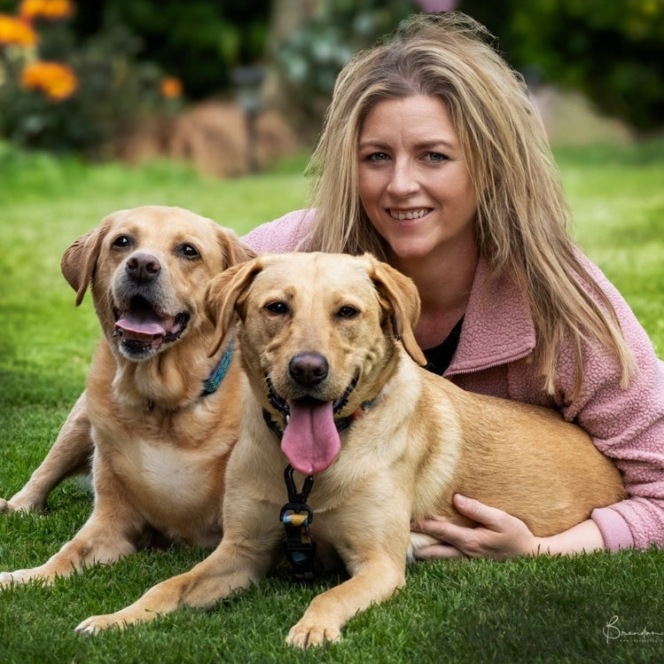 Hi I'm Karen, founder of Happy Tails along with our Chief testing officer Zoe, Happy Tails began in 2014 after I starting making Zoe her own treats when she was a pup. It was difficult knowing exactly what was in the treats. After she had a bad reaction to one brand of treats I began to make her my own. Making her treats gave me piece of mind knowing exactly what she was receiving. Zoe quickly spread the word to all the other dogs and Happy Tails was born. Zoe is the OG chief tester and never complains about putting in extra hours of taste testing. Riley has joined the Happy Tails family a year ago and is enthusiastically putting all our products to the test, she is our mini t rex chewer.